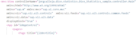 Ahora creamos el gráfico, usando para ello un control de tipo vizFrame. El tipo de gráfico que queremos usar (en nuestro caso, de tipo línea) lo definimos con el atributo viztype="line".